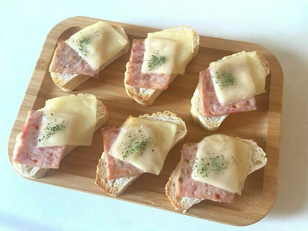 ハムとチーズをのせてトーストする、子どもに好評な組み合わせ。