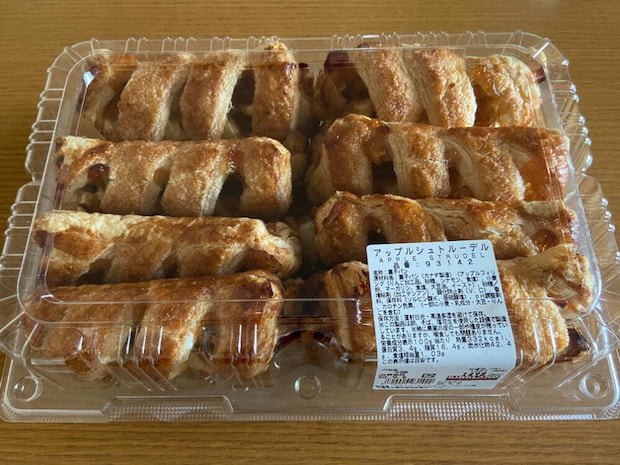 購入した商品は、きれいに編み込まれた生地のアップルシュトルーデルが8個入っており、1個のサイズが大きい点もコストコならではの特徴です。