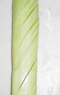 切り落とさないように注意しながら、半分くらいの深さまで表面に切り込みを入れていきます。