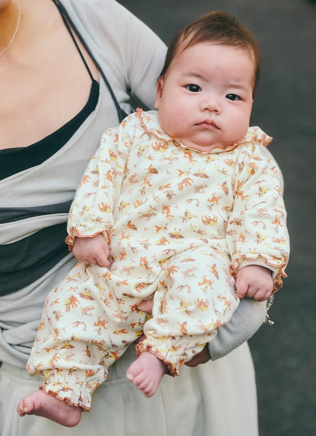 レトロ柄が映えるベビースタイル