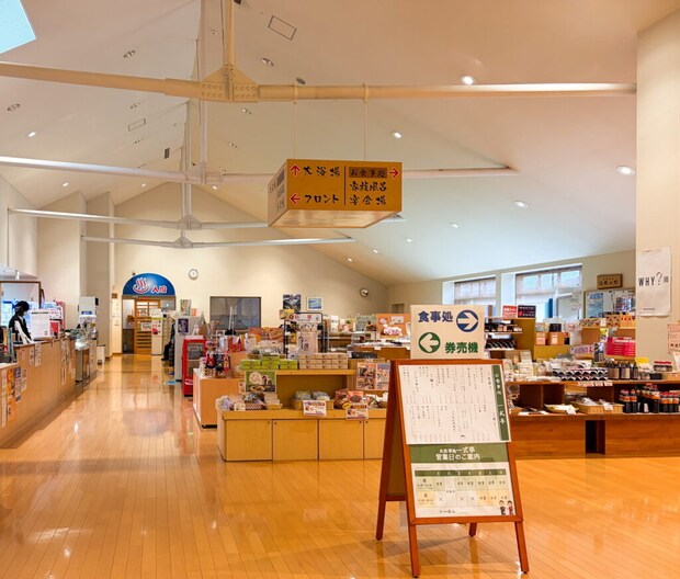 お土産屋さんが併設されていて広々とした店内です!宿にもお風呂は付いていますが温泉でゆったりと旅の疲れを癒してみてください。