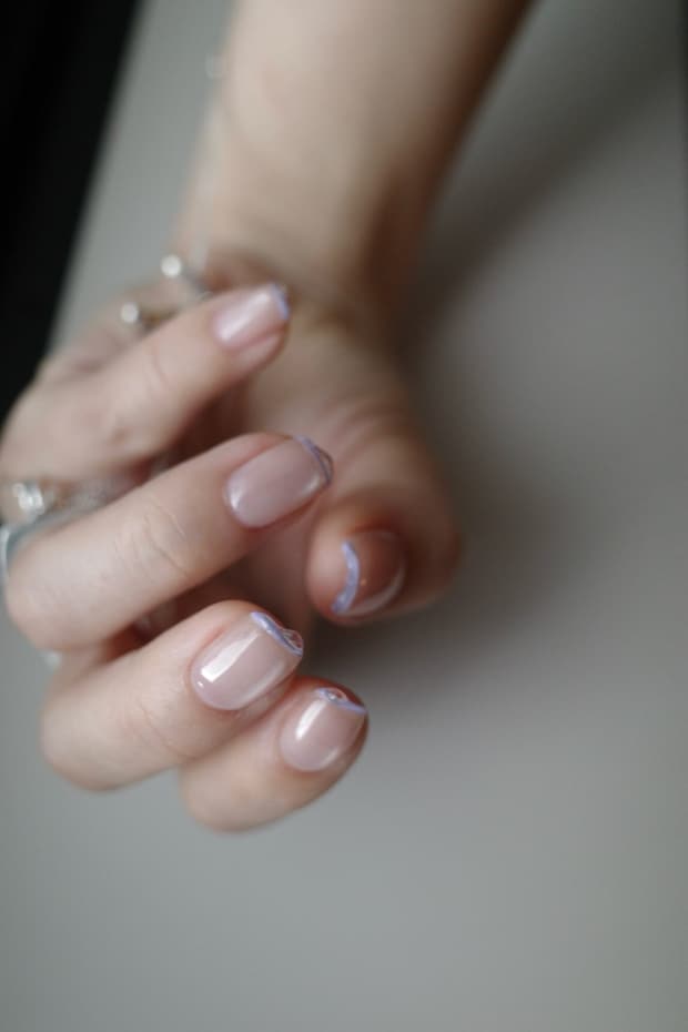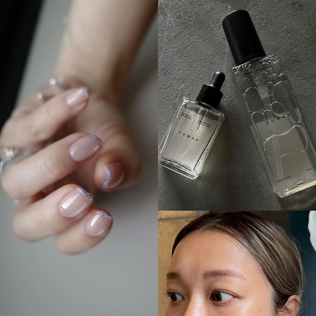 ヌーディーなミラーに先端は春カラーの薄紫で。クリアの先端もお気に入り!