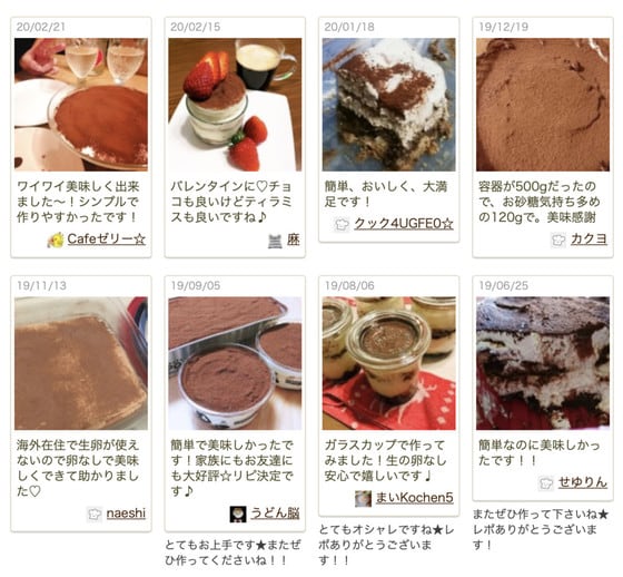 作業時間10分で簡単に作れて、つくれぽでも大人気のティラミスをご紹介しました。ぜひお試しください。