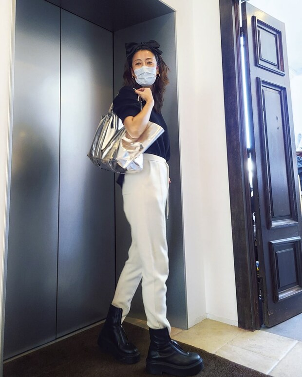 今回、「こずさんのパーソナルスタイリングぶりを拝見したいのですが……」と恐る恐る相談したら「もちろんどうぞ。わあ、オトナミューズに出演するの初めて。楽しみですー!」と気さくさ全開でOKしてくださった田波さん。脚、長! 肌めっちゃキレイ! 「全然。(子育てで)ずっとお休みしてましたから」と謙遜するお姿もカリスマティック!