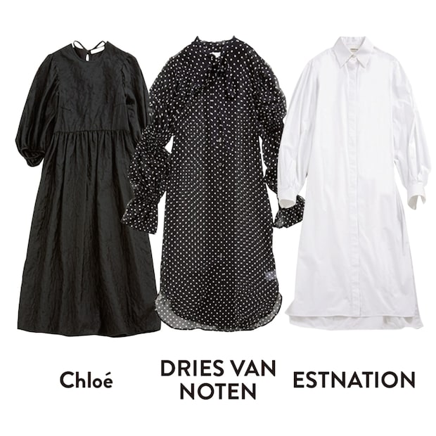 「欲しいのは、ぺろっと1枚でもごはん食べに行けて、ブーツにも合うドレス。結局、こずこずが以前持ってきてくれたモード系の黒っぽいのを着ることが多いんですよね」(田波さん)。