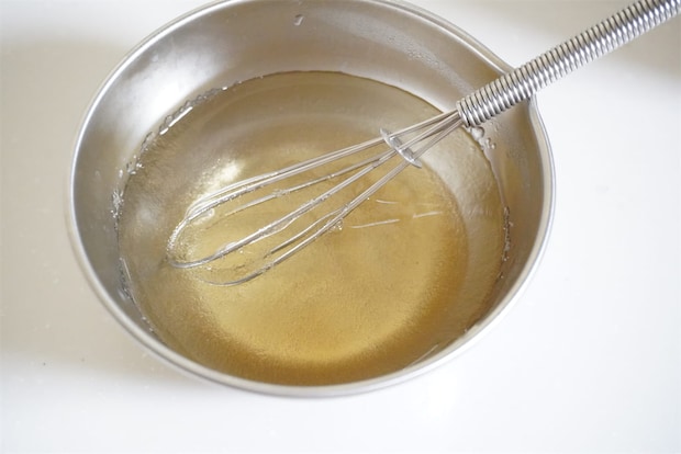 2. ゼラチンを80℃のお湯100ml(分量外)で溶かしておく。