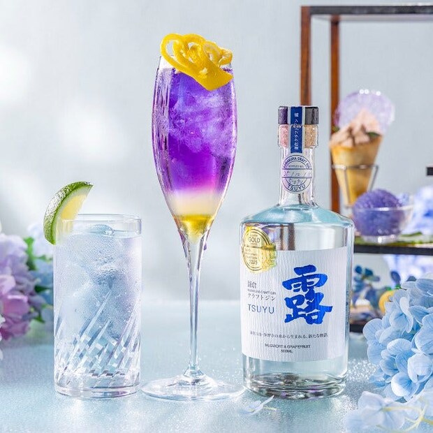 品川上空から望む絶景とともに、鎌倉クラフトジン「露」の香りとあじさいの彩りに包まれる贅沢な初夏のひとときを。