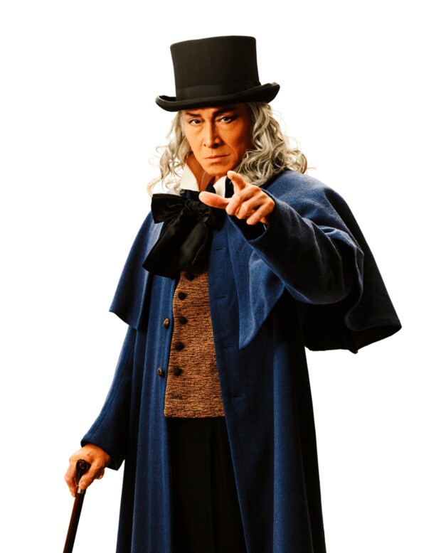 主人公スクルージを演じるのは、実力派俳優・吉田栄作さん。強欲な老人が過去・現在・未来を旅し、心の変化を遂げていく様子を、力強い演技で描き出します。