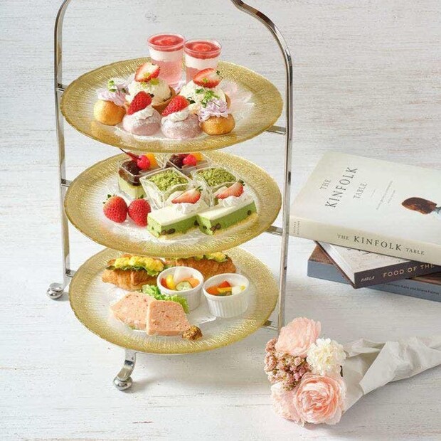 抹茶の風味とマスカルポーネの濃厚さが楽しめる「抹茶ティラミス」、抹茶プリンの上に、あんこや寒天、フルーツをのせた豪華な「抹茶あんみつ」など抹茶の豊かな香りが引き立つ抹茶スイーツに加え、いちごのピューレの酸味がアクセントの「ストロベリーゼリー」や、いちご味のクリームと小倉あんを包んだ「苺大福」など、いちごの甘みや酸味を活かしたいちごスイーツもお届け。卵サンドやチキンオードブルといったセイボリーメニューもセットに。