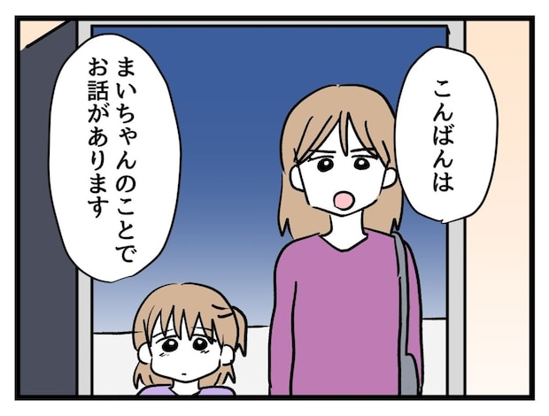 ゆいかと母親は、まいのことで家にやってきました。しかし2人の表情を見るかぎり、楽しい話ではなさそうです…。