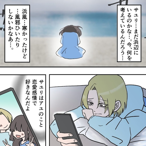 サユリはまだ浜辺にいるのかな、今何を考えているんだろう。浜風寒かったけど、風邪ひいたりしないかな。そんな風にサユリを心配する一方で、私の頭からはタクマさんに告げられた「サユリはアユのこと、恋愛感情で好きなんだよ」という言葉が消えませんでした。