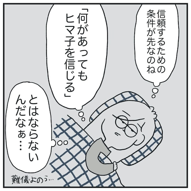 「これは彼自身の問題」とヒマ子さんが考えるように、真の意味で自分を変えることができるのは、自分だけです。長年抱えてきた思考の癖を短期間で変えることは容易ではありませんが、不器用ながらも「変わりたい」と願い、向き合うことをあきらめない二人。相手との価値観の違いを認め、自らが変わる努力を続ける大切さを教えてくれる作品です。