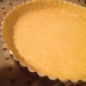 タルト型にタルト生地を入れてフォークで穴をあけておきます。