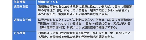早期注意情報とあわせて、活用したい気象情報を以下にまとめています。