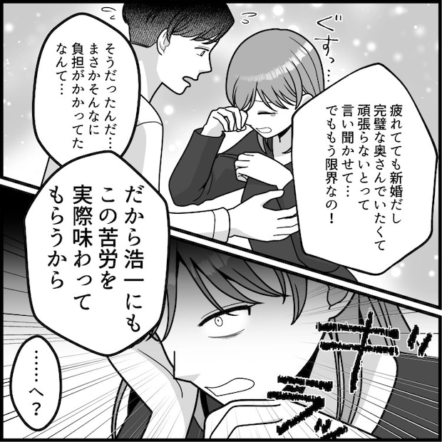 彩香は1カ月前に結婚したばかり。新婚でいつも夫が手料理を喜んでくれるため、毎日手の込んだ料理を作っていた。しかし、仕事をしているため、最近は時間をかけて料理することが大変になってきていた。そんなある日、同僚の奈央子から電気圧力鍋をおすすめされて、興味を持つ彩香。少しでも料理の負担を減らすため、夫に電気圧力鍋を購入しないかと相談するが、なんと夫からは信じられない言葉が返ってきた!?