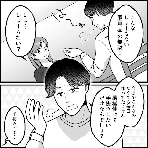 「電気圧力鍋なんて手抜きだろ」「俺は愛情のこもった手料理しか認めない!」共働きの料理ストレスを相談したら夫にディスられた!?