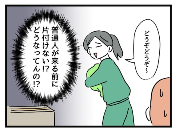 りさの家に遊びに来たはるか親子。出迎えたりさは寝坊して今起きた、と言います。リビングは引っ越してきてひと月経つのにまだ荷ほどきも終わっていなくて、散らかった状態。普通人が来る前に片づけない?どうなってんの?とはるかはドン引きしてしまいます。