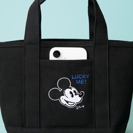 ちょっとしたお出かけに必要なアイテムが収納できるサイズ感に加え、ミッキーマウスの面にはカードやスマートフォンが入るポケットが付いて使い勝手も抜群です。
