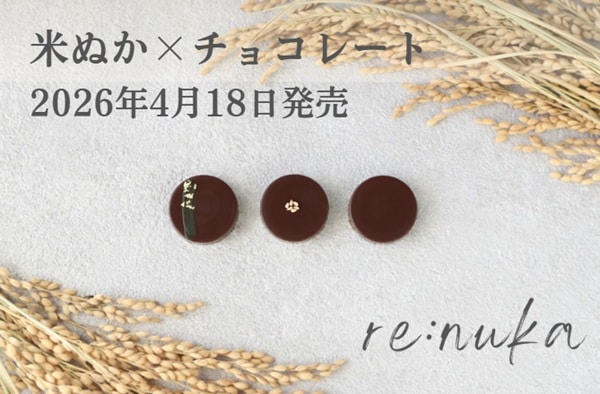 wellty(ウェルティ)の新ブランド「re:nuka(リヌカ)」は、米ぬか20%配合のチョコレート「re:nukaチョコ」を4月18日(土)より公式オンラインショップにて販売開始した。