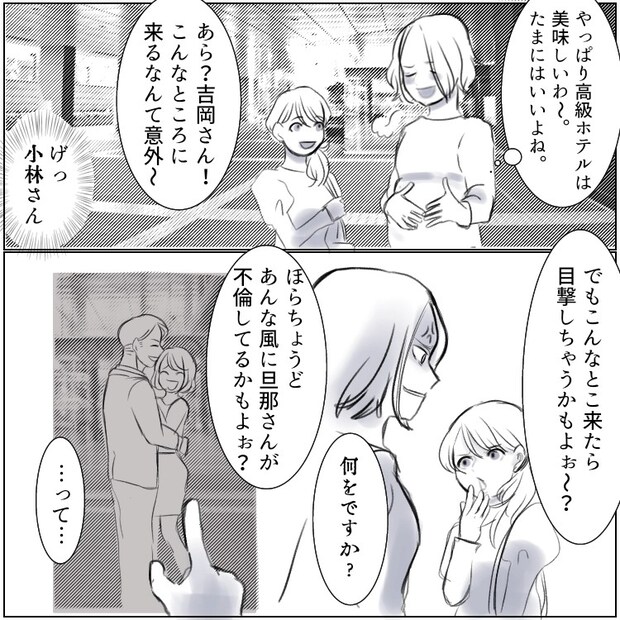 なんとホテルから出てきたのは小林さんの夫だった!この後、サレ妻たちの関係に変化が!?