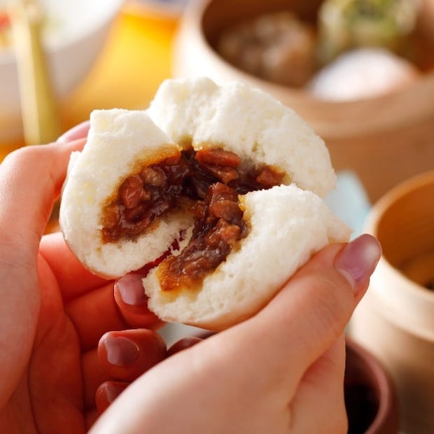 せいろで登場するのは、チャイニーズアフタヌーンティーならではの点心。濃厚な味わいの叉焼が包まれた「叉焼入りまんじゅう」や弾力のある海老の食感が楽しい「海老蒸し餃子」、素材の歯ごたえが特徴的な「野菜焼売」など、蒸したての点心たちが勢揃い。