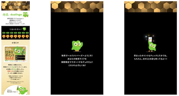 今回のコラボ、仕掛けは広告だけではありません。特茶を1本飲むごとにラベル裏の二次元コードを読み込むと、LINE公式アカウント「TOKUCHA Gold Members」上で20ptを付与。10本飲んで200pt貯まれば、特茶1本分のクーポンと引き換えが可能です。まさに、語学と同じく「継続」が鍵となる健康習慣への強力なバックアップ。