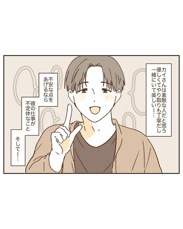 カイさんと一緒にいる時間はとても楽しかった一方で、カイさんの休みが不定休であることが少し気になりました。