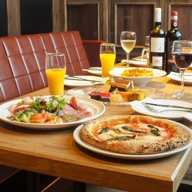 池袋WACCA内に位置する「Trattoria&Pizzeria LOGIC」は、落ち着いた照明が灯る「大人の隠れ家」のような雰囲気が魅力。100席以上の広々としたフロアにはデザイナーズ家具が配され、少人数のランチ飲みから大人数の女子会まで幅広く重宝します。自慢は、高温の石窯で一気に焼き上げるモチモチのナポリピッツァと、旨みが凝縮された熟成肉。飲み放題メニューにはプレミアムモルツやスパークリングワイン、さらには豊富なカクテルが揃い、テーブルを華やかに演出してくれます。高級感のある空間でゆったりと過ごせるため、昼から少し贅沢に、非日常感を満喫したい記念日やご褒美の昼飲みにぴったりです。