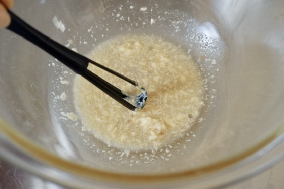 2. ボウルにマヨネーズ、酢、だしの素などの調味料を合わせてよく混ぜておきます。