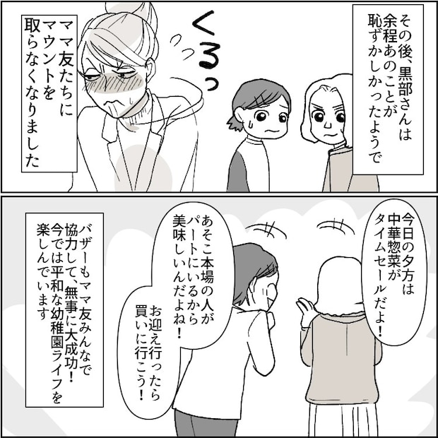 ビシッと大将に言われて、大恥をかいた黒部さん。無事にママ友たちへのマウントが無くなったようで良かったですね!