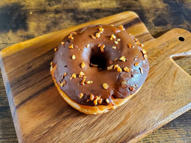 なめらかな舌触りのキャラメルチョコレートをコーティング。ほろ苦さと甘さが同居する大人な味わいを楽しめます。もっちり&なめらかな食感の中、いいアクセントになっているのがトッピングのナッツ。シャクっとした食感が加わることで、全体のバランスがぐっと引き締まっています。