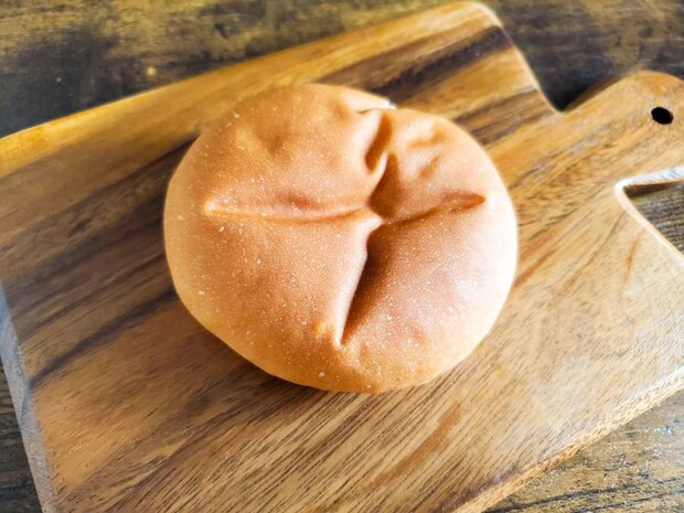 手に取ってみると、小ぶりな見た目をいい意味で裏切るずっしり感に驚きました。指で押すと凹むくらいのもっちり弾力のある感触は、まるでパンとおまんじゅうの中間のよう。和洋折衷な味わいと新食感の組み合わせに期待が高まります。