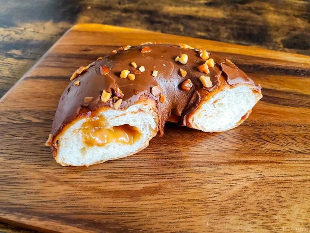 パンの中には、とろっとしたキャラメルクリームがたっぷり!甘めの仕立てで、ビターなキャラメルチョコレートと相性抜群です。濃厚な口当たりは、キャラメル好きにはたまらない味わい。ひと口ごとにリッチな味わいが広がります。