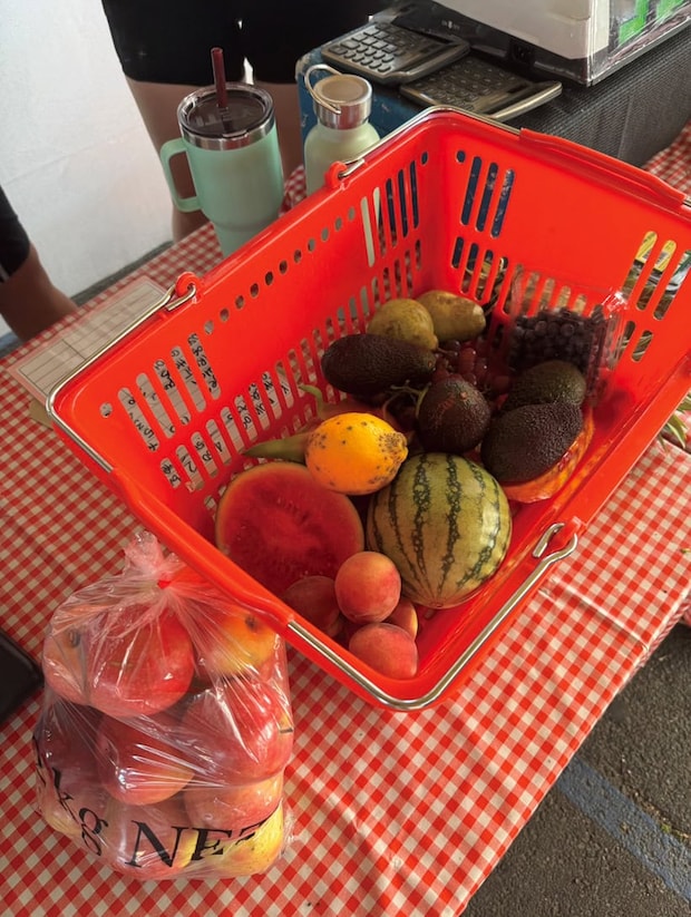 オーガニックしか売っていないファーマーズマーケットで、山盛りのフルーツをゲット