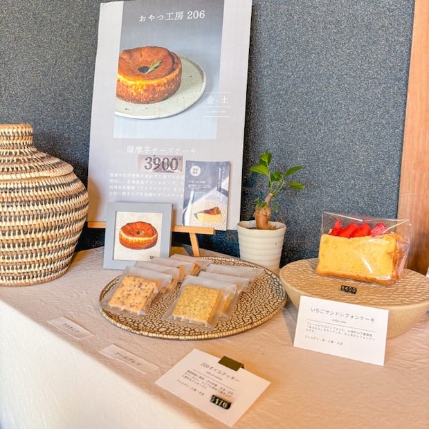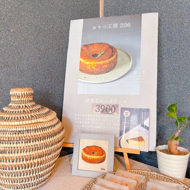 自家栽培の薩摩芋を贅沢に使用した、こだわりのチーズケーキが味わえる「おやつ工房206」。