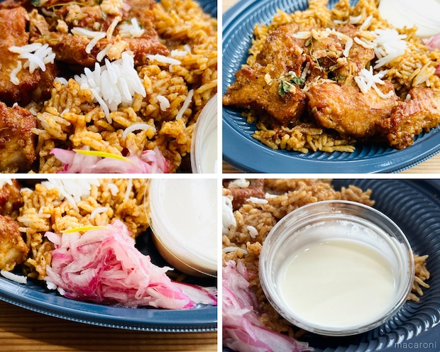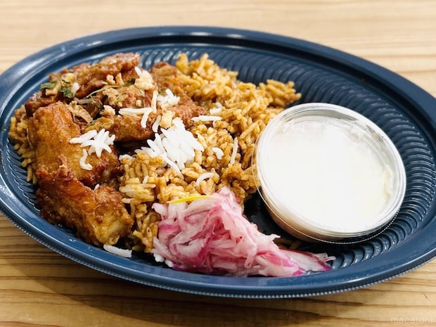 ライスには色ムラがあり、本場のビリヤニらしく仕上げられています。チキンもごろごろとのっていて、しっかり食べごたえがありそうです。