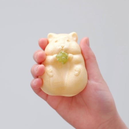 セットには抹茶味とはちみつ味の2色の金平糖が付き、ハムスターのおなか部分にある小さなくぼみに置くことで、まるでお菓子を抱えているような姿を楽しむことができる。