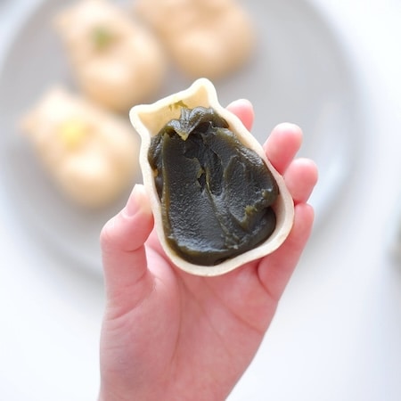 食べる前の工程も簡単で、ハムスターモナカの皮に抹茶餡を詰めてフタをし、