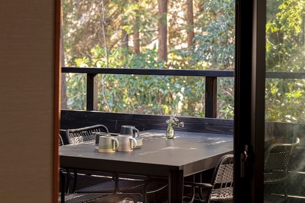特に、箱根の森を望む大きな窓は、日常の喧騒から離れて心身を解き放つ極上の空間を提供。この唯一無二の空間に、KINTOのテーブルウェアが加わることで、利用者の五感をさらに刺激し、心身ともに深く満たされる滞在を演出する。