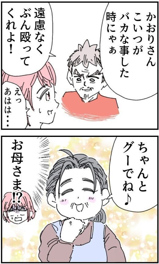 2026年4月18日 優しいお義母さまが!!?「ちゃんとグーでやるのよ♪」ってどういうこと!? マイナビ子育て 長女を出産したばかりの新米ママ・かおり。ほぼワンオペ育児で限界寸前の中、ようやく夫の育休がスタート! しかし夫は育児を甘く見ていて……ついに不満が爆発! 育児の大変さを理解させるため「ワンオペ育児」の現実を突きつける作戦に! 笑いあり涙ありの共感必至な育児奮闘記『夫が育児をなめくさってる件』をご紹介します。『夫が育児をなめくさってる件』 第161回「いい顔するね! 気に入った!」かおりさんの食べっぷりにご満悦の父。すると、いちろうに声をかけます。✅【続きを読む】 コワモテ義父と初対面!波乱万丈!? ✅この漫画を第1話から読む (漫画:くまお/編集・文:マイナビ子育て編集部)
