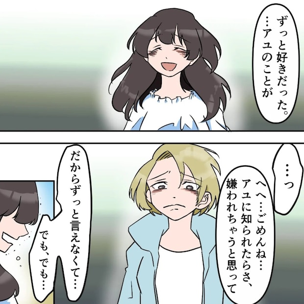 「ずっと好きだった。・・アユもことが。へへ・・ごめんね・・アユに知られたらさ、嫌われちゃうと思って、だからずっと言えなくて・・でも、でも・・」サユリの声がどんどん震えてきたかと思うと、