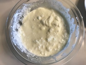 バニラアイスとクリームチーズを混ぜ合わせたものに、メレンゲをふわっと混ぜ合わせる