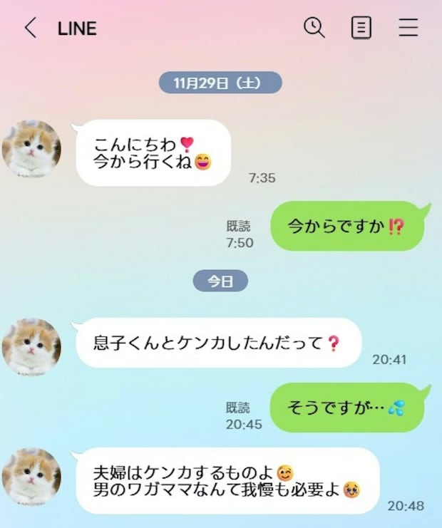 ・息子が既読が中々付かないからと言って、何事も旦那(息子)を通さずに全て私にLINEが来る
