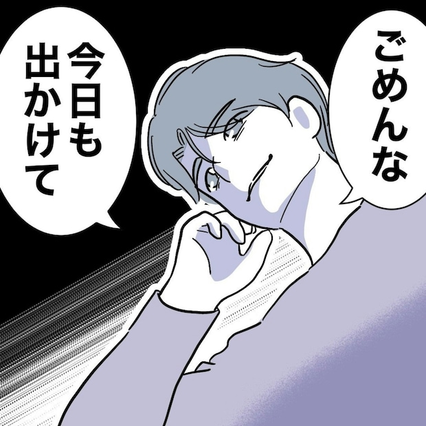 家族で過ごせる貴重な休日…。ですが、夫は予定があるようです。「ごめん」と言いながらも、あまり悪気を感じていないような表情が気になりますね。