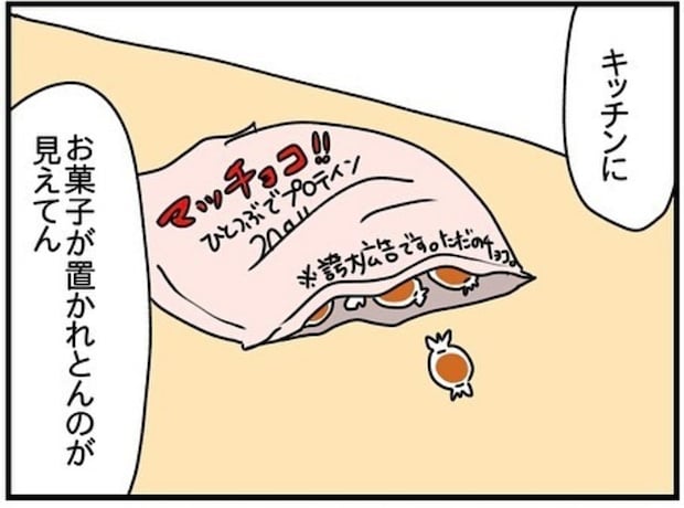 チコちゃんは、キッチンにあったお菓子に気が付き、なぜか思ってもいない衝動に駆られてしまいます。
