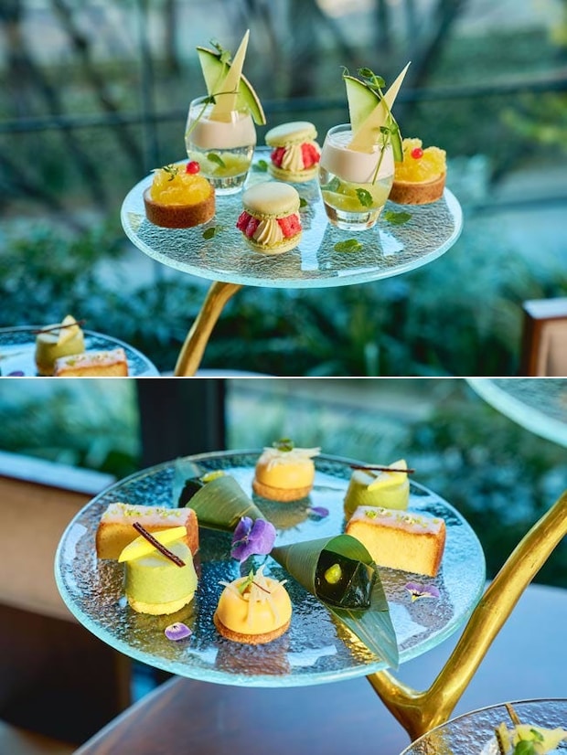 「“爽(そう)” ~春から夏への移ろい~」をテーマに、グリーンの色彩が映えるスイーツがずらり。