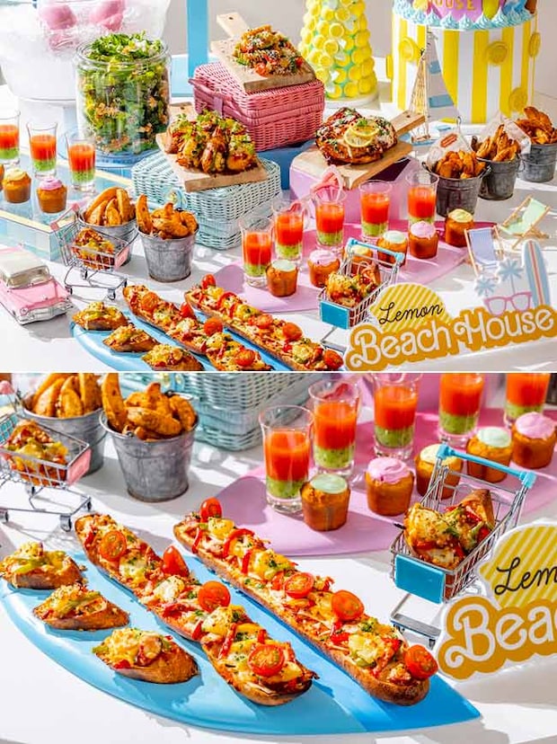 スイーツだけでなく、遅めのランチとしても満足できる8種類の軽食も用意される。「スイカと国産トマトのスムージー」や「ビーツとポテトの冷製スープ」といった冷たいメニューから、「ギリシャ風レモンローストチキン」、パイナップルとバーベキューソースが食欲をそそる「ハワイアンバゲットピザ」まで、夏らしさ満点の本格セイボリーを好きなだけ召し上がれ。