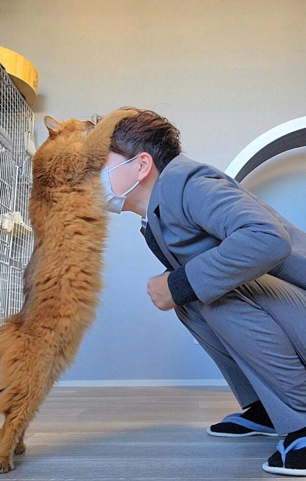 出勤前のパワーチャージ、愛猫とのハグに4.9万いいね
