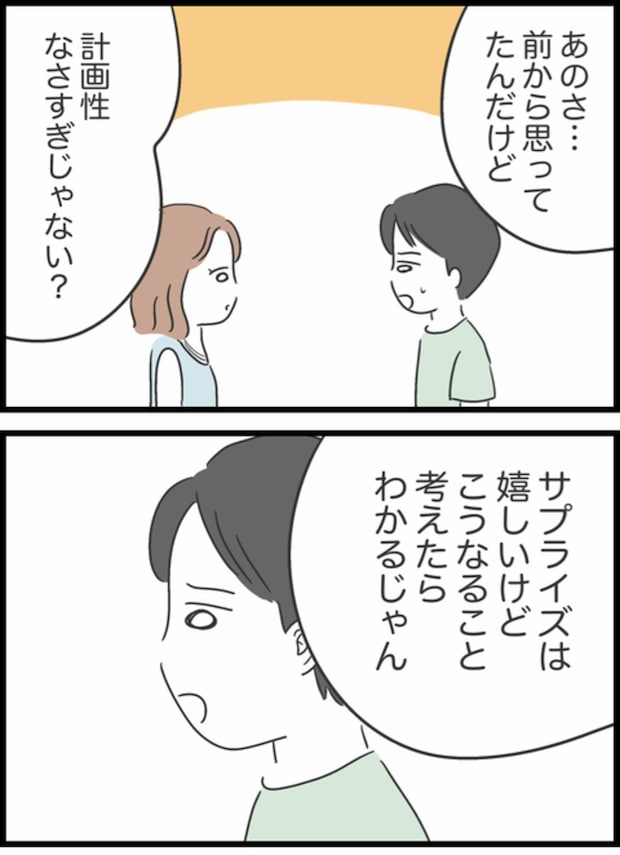 彼氏は「前から思ってたんだけど…」と前置きしたうえでりかの計画性のなさを指摘します。「少し考えればこうなることはわかったはず」という正論を言われ、りかはブチギレしてしまいます。せっかくの誕生日を台無しにされて怒りたいのは彼氏のはずなのに、最後までりかを気遣いながら話していますね。別れ話になってしまったのも納得ですが、りかは彼氏の言うことを認めたくはないようです。すみれはこの話を聞いてどう思ったのでしょうか。