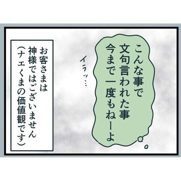 ナエくまさんの指摘するように、お客さまは「神様」ではありません。お互いに心地のいい空間を過ごすためにも、周囲に対する思いやりや配慮は必要だと考えさせられる作品です。